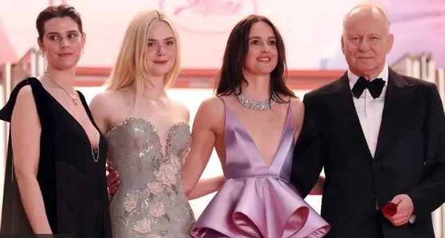 Stars of the film "Sentimental Value" (from left to right) Inga Ibsdotter Lilleaas, Elle Fanning, Renata Reinsve, and Stellan Skarsgård. Photo by Getty Images.
