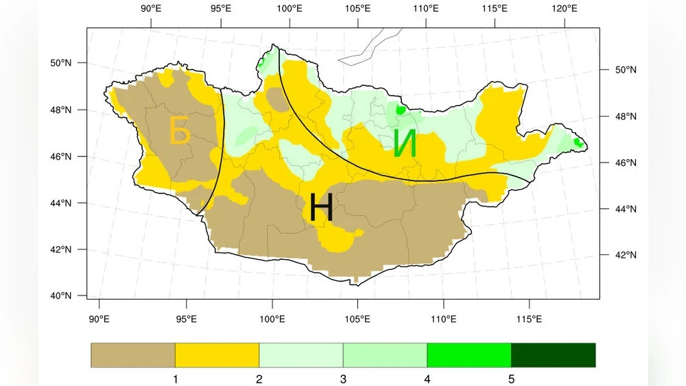 In the Central aimags, the average air temperature this month will be below long-term averages in Bulgan, Selenge, Töv, eastern Khövsgöl, Arkhangai, and northeastern Övörkhangai, while in other areas it will be approximately in line with average levels. Precipitation levels are also expected to be above long-term averages in most aimags of Khövsgöl, Bulgan, Selenge, Töv, and northeastern Arkhangai, while in other areas it will be at normal levels.