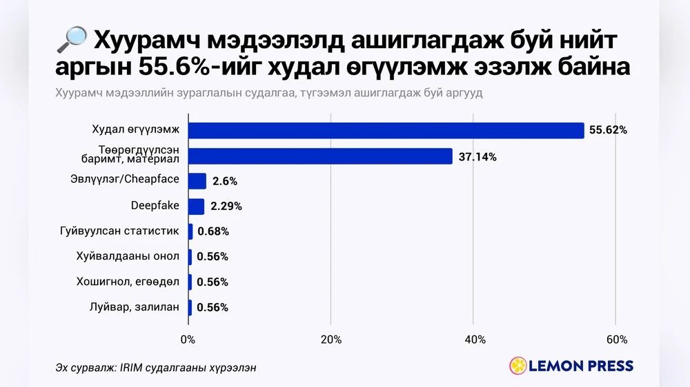 Troll networks: Organized and funded by political or commercial interests, networks of fake accounts on social media are a primary tool for spreading disinformation. According to estimates from the Main Police Department, by 2023, there could have been around 400,000 fake accounts created in Mongolia.