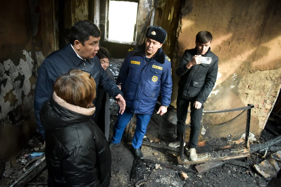 The mayor of the city, Aibek Junushaliev, visited the scene and met with those affected by the fire.