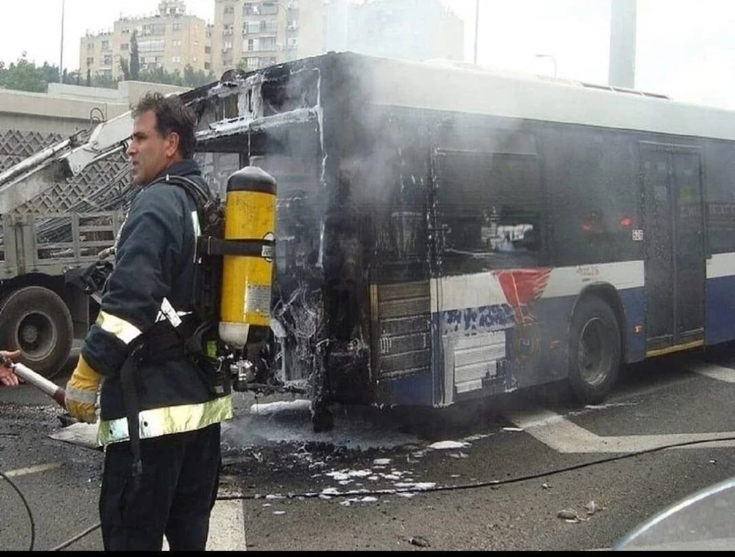 The strong impact caused gravel to collapse onto the bus, trapping some passengers inside. Rescue...