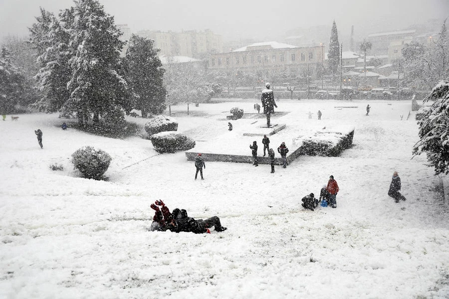 Due to the heavy snowfall, educational institutions are closed in 14 provinces, and children, taking advantage of the forced break, are entertaining themselves by sliding down on plastic bags.