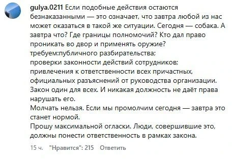 - “If such actions go unpunished, it could mean that any of us could find ourselves in a similar situation. Today it's a dog, and tomorrow what? Where are the limits of their authority?” social media users write.