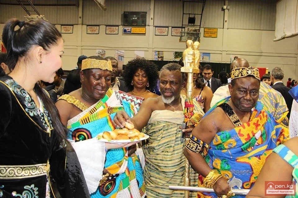 The King of Ghana, Otumfuo Osei Tutu II, was fed with Kyrgyz boorsoks in the USA. The crowned figure, along with his entourage, visited the Kyrgyzstan booth at the International Day festival, which took place in Newark last Saturday, November 22. This was reported today, November 24, by the head of the Kyrgyz Club, a public organization of Kyrgyz citizens abroad, Aibek Hakimov.