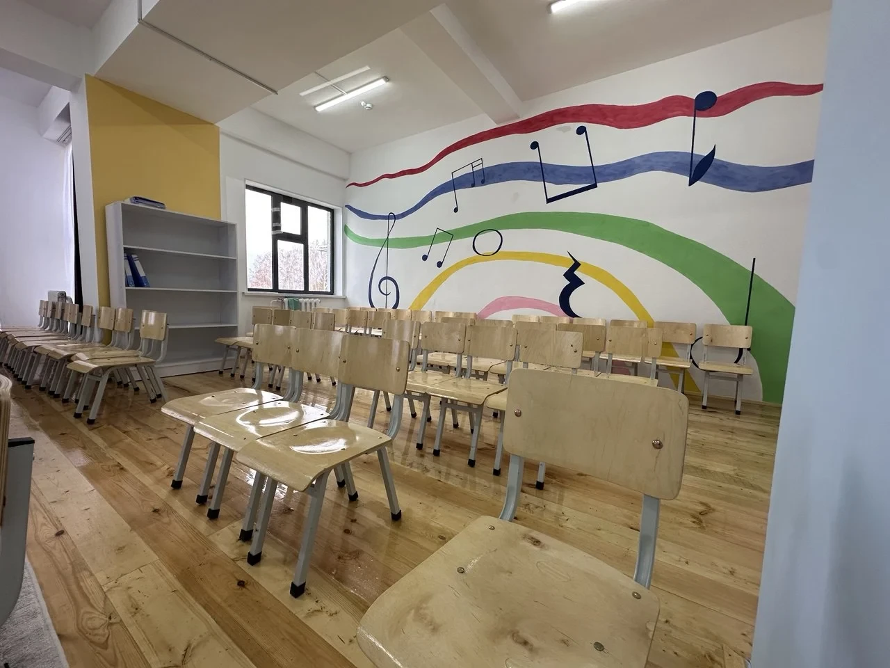 According to the master plan, a modern two-story building has been constructed, with a total area of 2927 square meters, equipped with all necessary conditions for the comfortable stay of children.