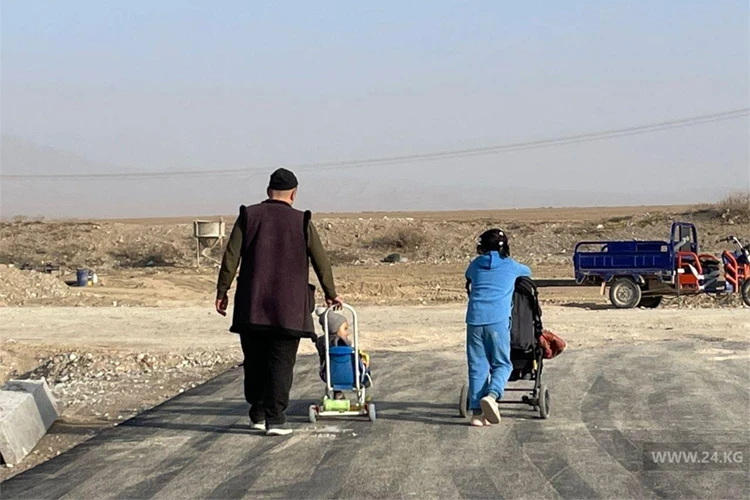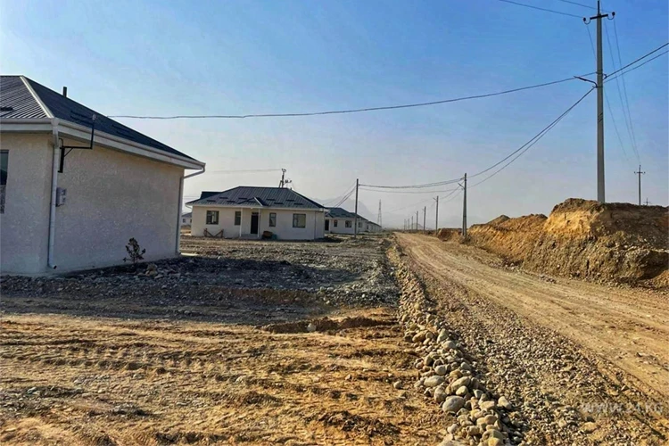 Local residents share directions on how to get to the new homes: "From the center of Batken, it's about 20-30 minutes towards the mountains." The road ends with asphalt, after which there is a short stretch of unpaved road, where the smell of fresh asphalt is felt, and a desert rocky landscape and mountains open up around. New houses stand ahead, like soldiers on parade, and the rumble of working excavators can be heard.