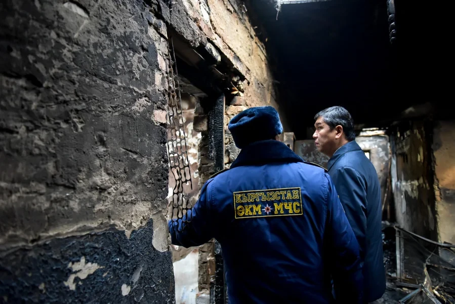 The Mayor of Bishkek, Aybek Junushaliev, visited the burned house on Chyngyz Aitmatov Avenue, where a fire recently occurred. The mayor spoke with local residents, listened to their concerns, and clarified that the city administration has already begun providing urgent assistance to the affected families.