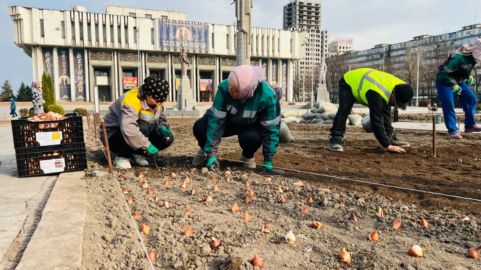 Representatives of "Bishkekzelenstroy" are asking residents to show respect for green plantings: do not dig up bulbs, do not damage planting material, and do not interfere with the greening process.