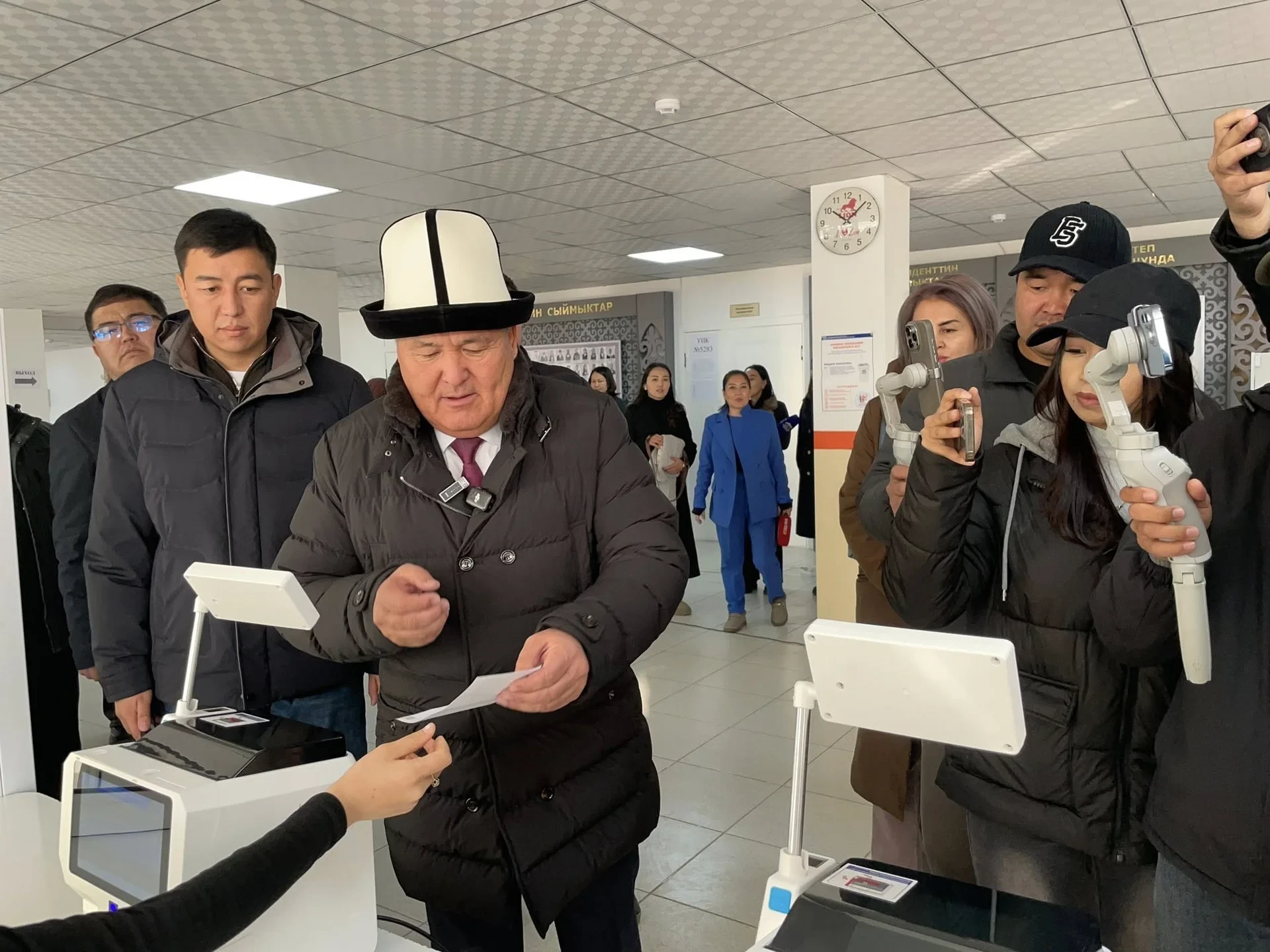 Elchibek Djantayev, representing the president in the Osh region, cast his vote at polling station...