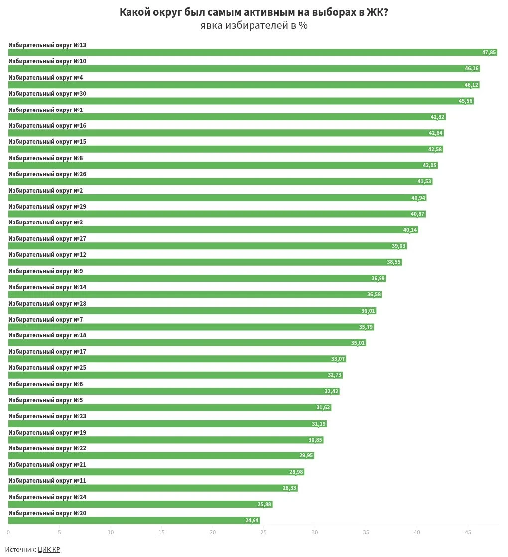 - Electoral district No. 13 (includes the city of Bazar-Korgon and polling stations No. 2423, No. 2428, No. 2140, No. 2141; Kenesh, Arstanbap-Atyn, and Saidykum rural areas of the Bazar-Korgon district; as well as the Mombekov and E. Aliyev rural areas, the city of Kochkor-Ata in the Nooken district, and the city of Mailuu-Suu);