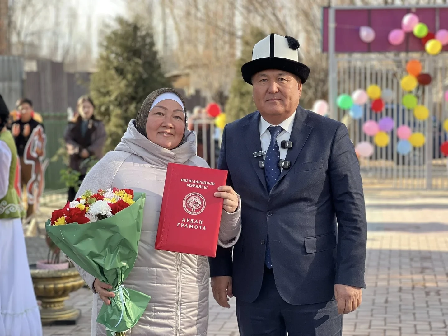 Various officials participated in the opening ceremony, including the mayor of the city, Jenishbek Toktorbaev, and the deputy chairman of the city council, Niyazbek Nurbaev, as well as local residents.