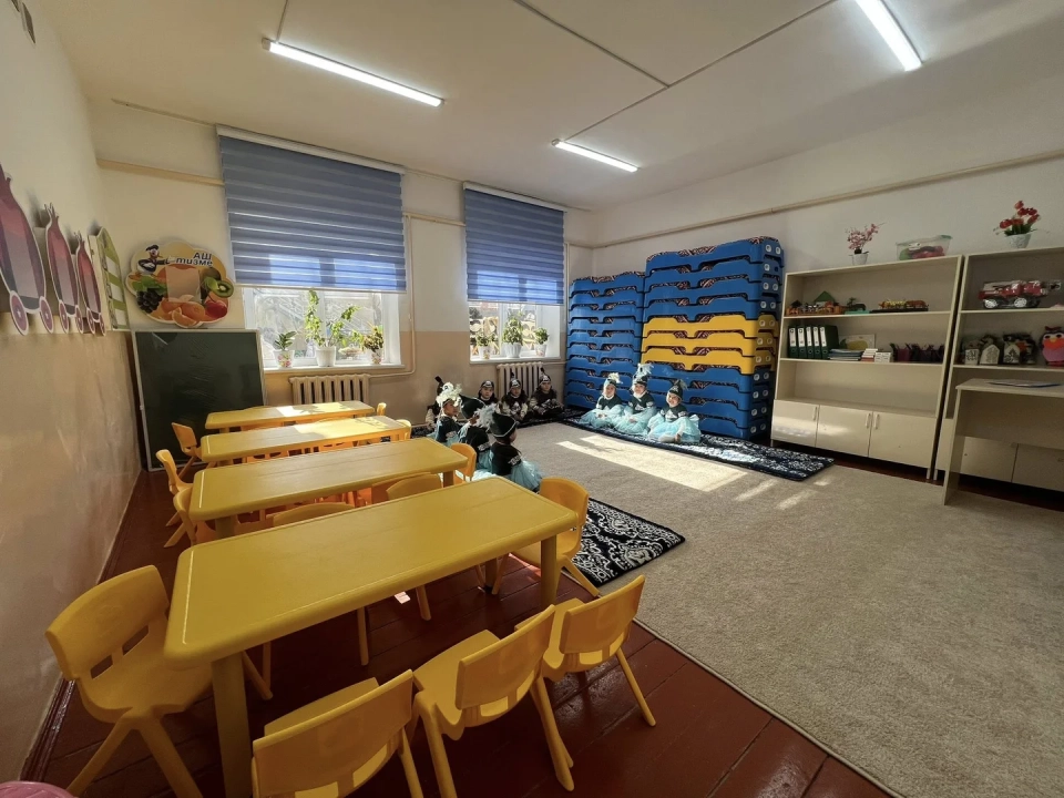 Previously, this building was used as a branch of school No. 34 named after Ch. Tuloberdiev. After the school moved to a new building, the vacated premises were repurposed into a kindergarten by the decision of the mayor's office. The new institution can accommodate 100 children and consists of four groups that meet modern requirements.