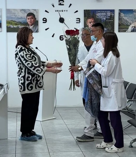 Participants in the ceremony included the director of the NCPCM, Shaiyrbek Sulaymanov, hematologist Aigul Cherikchieva, head of the oncology department Sultan Stambekov, and Victoria Mozgacheva, the vice-mayor of Bishkek for social issues.