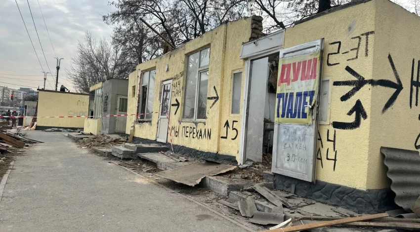 According to information from the authorities, at the corner of Jibek Jolu Avenue and Osmonkul Street, temporary facilities are being demolished by decision of the commission due to the expiration of the lease term.