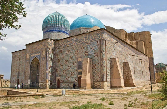 The mausoleum of Khoja Ahmed Yasawi occupies an exceptional place in the spiritual history of the Turkic world. This grand structure, built in the late 14th century on the orders of Emir Timur, has become a symbol of respect for the great Sufi, reformer, and poet who had a significant impact on the spiritual culture of the region. The architecture of the mausoleum is unique, combining elements of Persian, Turkic, and Central Asian traditions. Its imposing size, exquisite ceramics, and huge cauldron for sacred water create an unforgettable image of the spiritual center of the steppe.