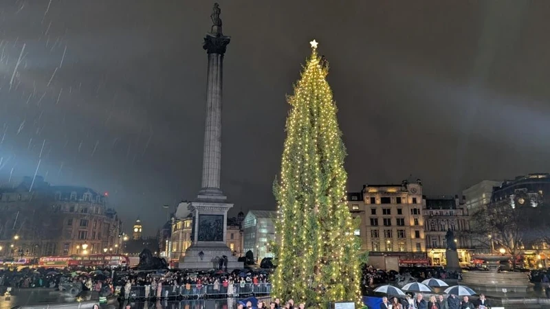 On December 4, the Christmas tree was lit in Trafalgar Square, marking a long-standing tradition in the UK. The tree, known as the "Eternal Oslo," was gifted by Norway and stands about 20 meters tall, and is around 60 years old. The tree is adorned with garlands that hang vertically, according to Norwegian customs, creating a stunning sight for all visitors.
