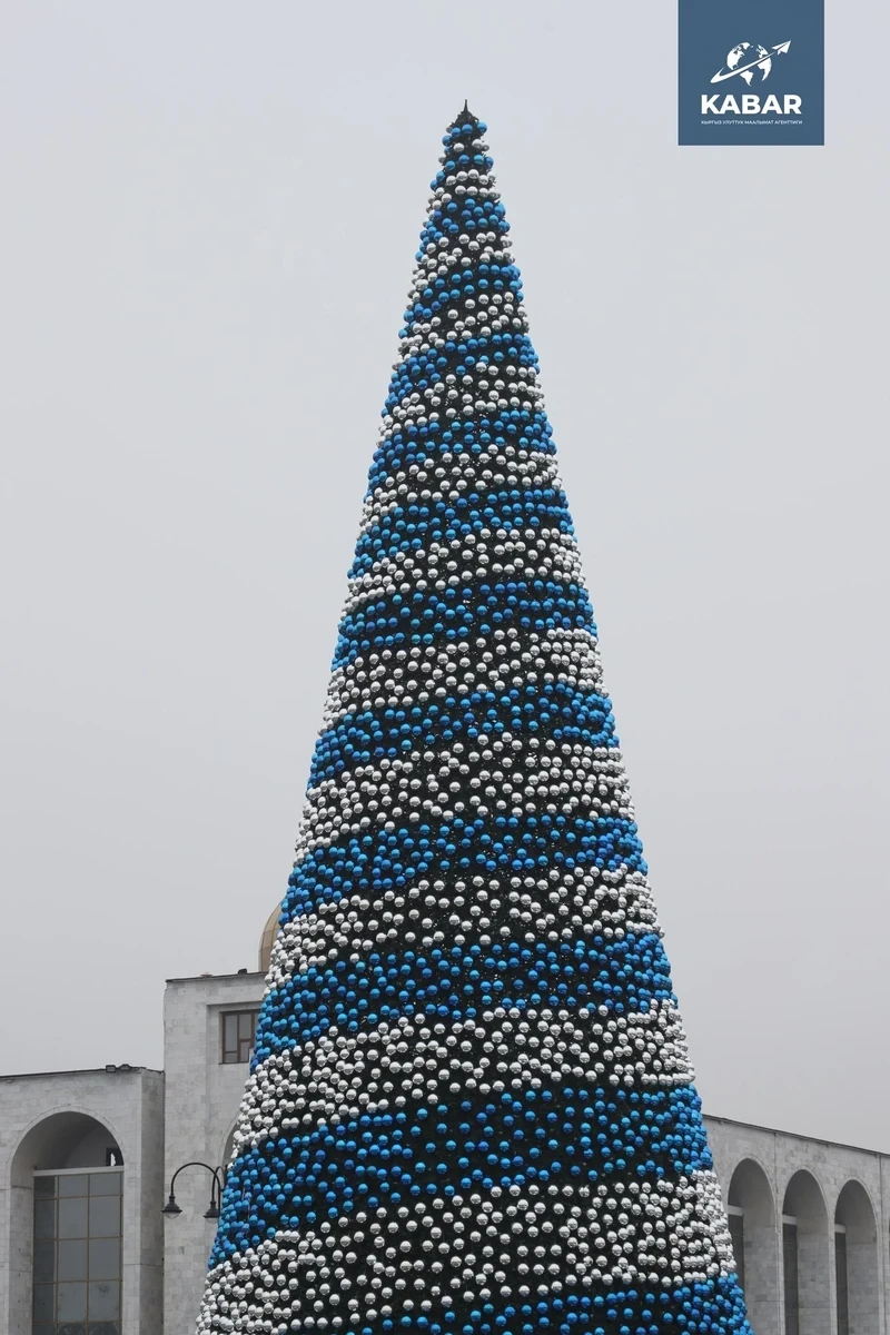 In Bishkek, the main tree will be lit on December 15 in Ala-Too Square. The height of the main tree is 32 meters, and with the star, it reaches 35 meters. It will be decorated with 2000 balls in blue and silver tones and will harmoniously fit into the architectural surroundings of the square, creating a festive mood for the residents and guests of the capital.