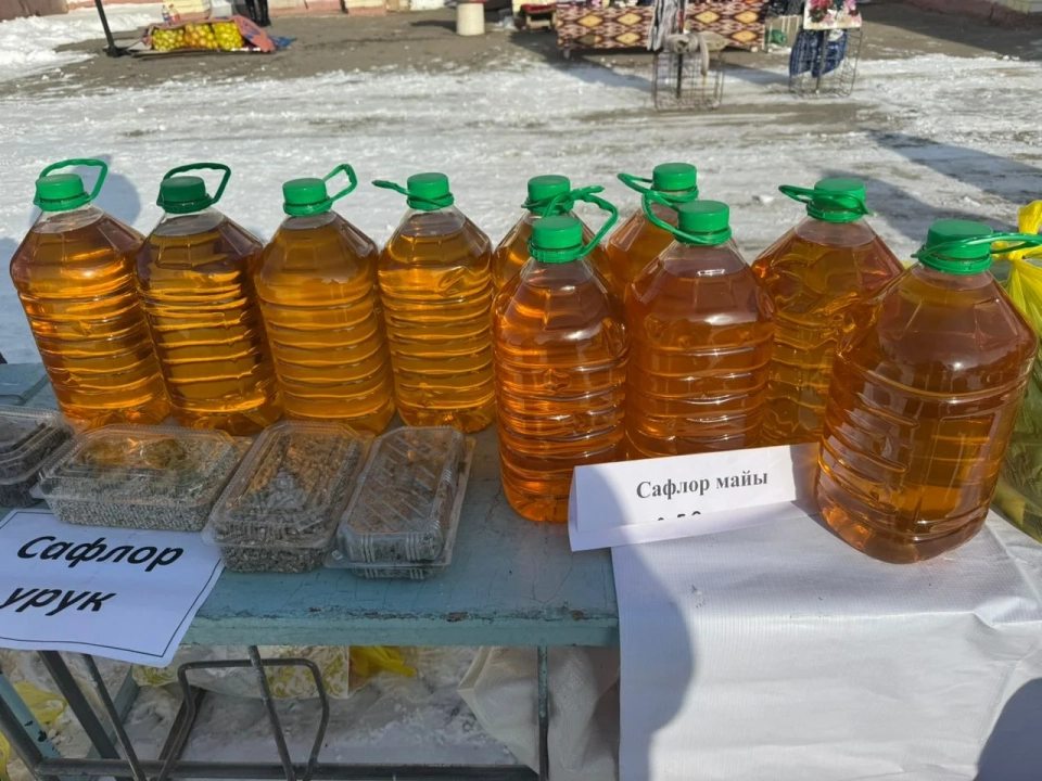 The city of Kadamjay on A. Zhalilov Street is hosting a food fair. At the event, buyers can find...