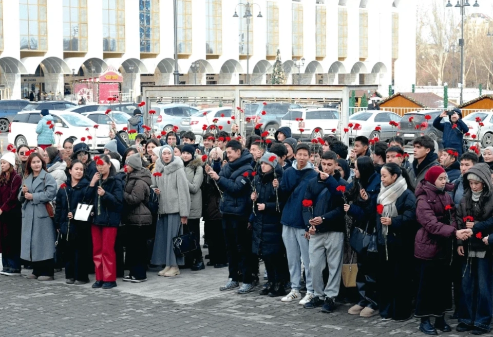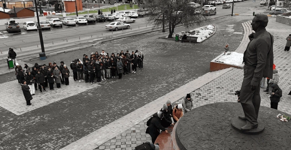 Gathered on the day of the national literature holiday and on the birthday of Chyngyz Aitmatov, more than a hundred volunteers from the NGO "Eurasia" gathered at the writer's monument to pay their respects to his memory and lay flowers.