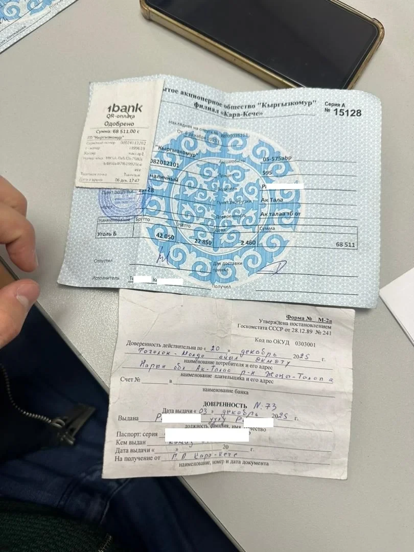 It should be noted that the trucks were loaded with coal at the Karakiche mine based on powers of attorney issued by the Togolok-Moldo rural district of the Ak-Tal region and were supposed to deliver coal to fuel bases located in this area.