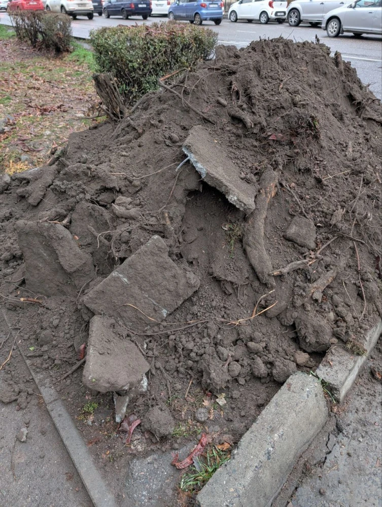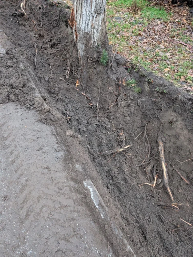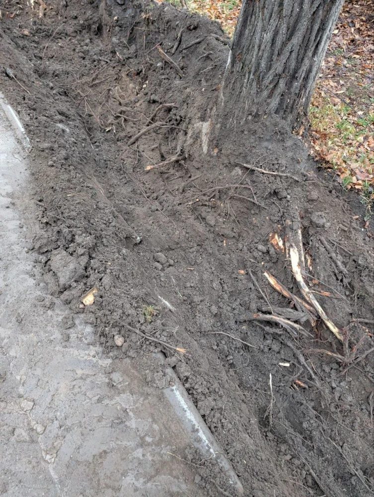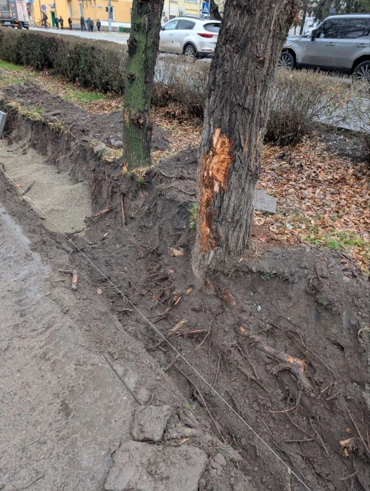 According to local residents, on Moskovskaya Street, between Turusbekov Street and Aitmatov Avenue, the work on replacing the drainage ditches is being carried out extremely carelessly. The machinery has damaged the roots of almost all the trees, and some of them have suffered bark damage.