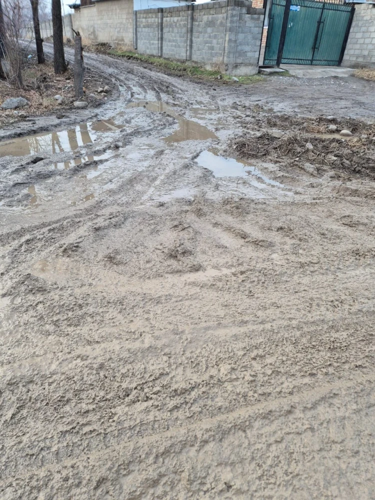 They stated, “Road work began before the elections but was soon halted. As a result, the road is in a deplorable state — deep puddles of clay have formed, making it impossible for pedestrians to walk and vehicles to pass. In bad weather, the clay reaches knee-deep in places, posing a serious threat to local residents.”