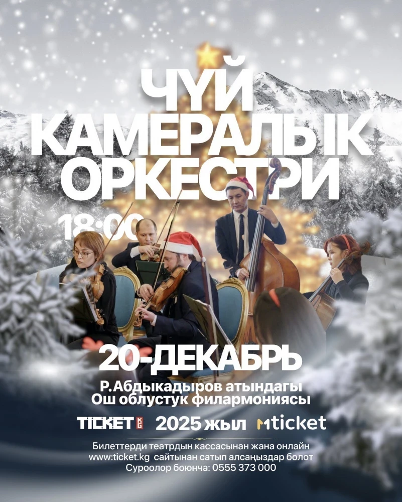 On the following day, December 20, the orchestra will perform in Osh, at the R. Abdykadyrov Osh Regional Philharmonic. The start time is 18:00.