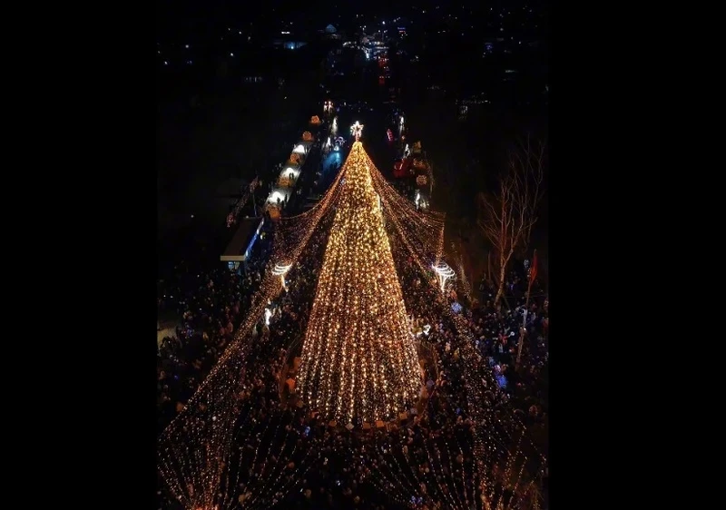 This bright structure, which reaches a height of 35 meters including the star, is decorated with about 7,000 ornaments and new lighting effects.
