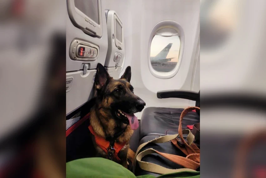 The flight consisted of three parts, and at the airports, the team was given separate rooms, supporting the rescuers and thanking the dogs for their work.