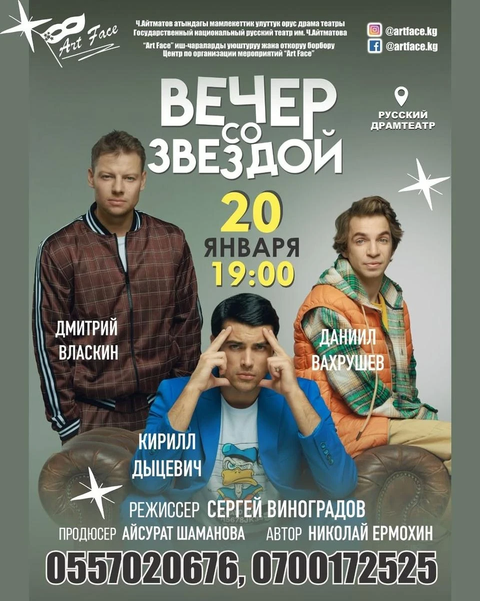 State National Russian Drama Theater named after Chinghiz Aitmatov, starts at 19:00.