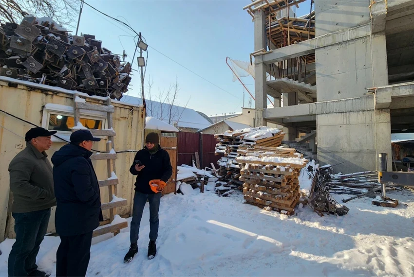 As part of the raid, the construction of a four-story medical center on Tabaldieva Street, 29 was inspected. During the inspection, serious violations in design and construction were identified, as well as non-compliance with several current regulatory acts.