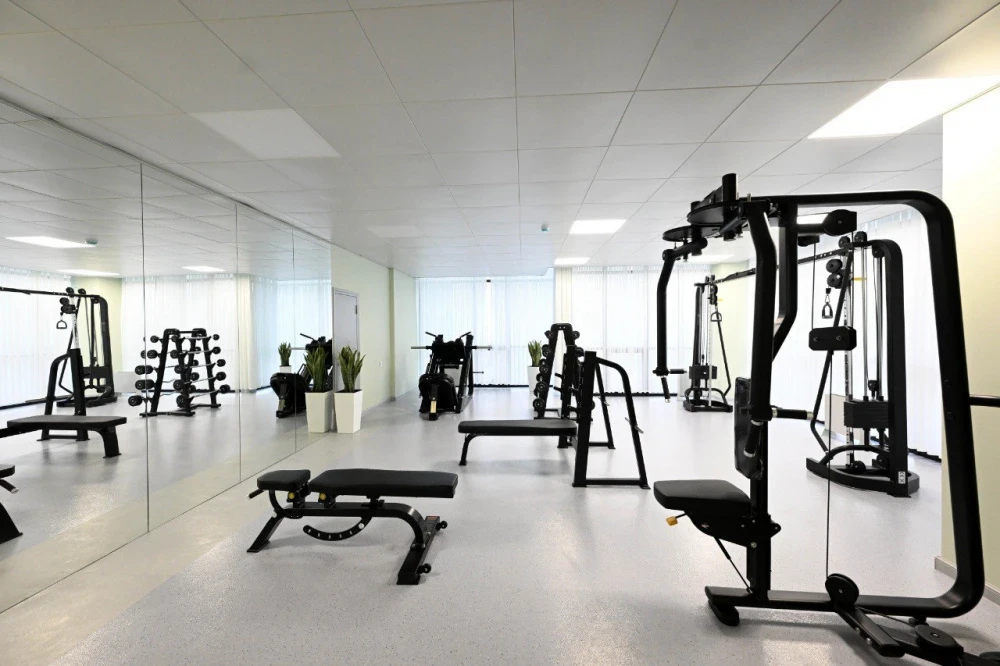 President Japarov inspected the rooms equipped with modern equipment, including magnetic resonance and computed tomography, ultrasound diagnostic machines, and echocardiography, as well as patient wards, a conference hall, and a gym.