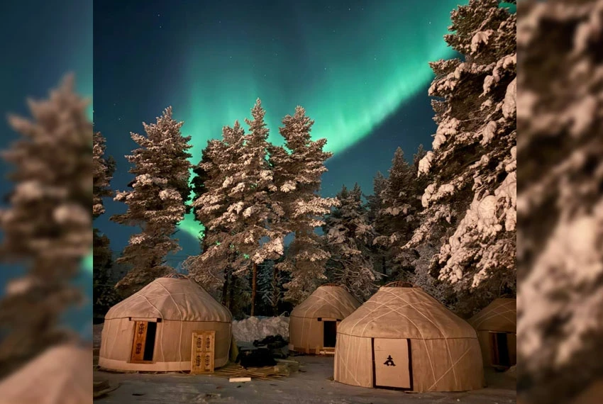 In Finland, there is Rovaniemi, a city on the Arctic Circle, which is considered the capital of Lapland. Here, in winter, you can see the northern lights, and in summer — the polar day. We arrived to set up yurts during Christmas — on December 24-25.
