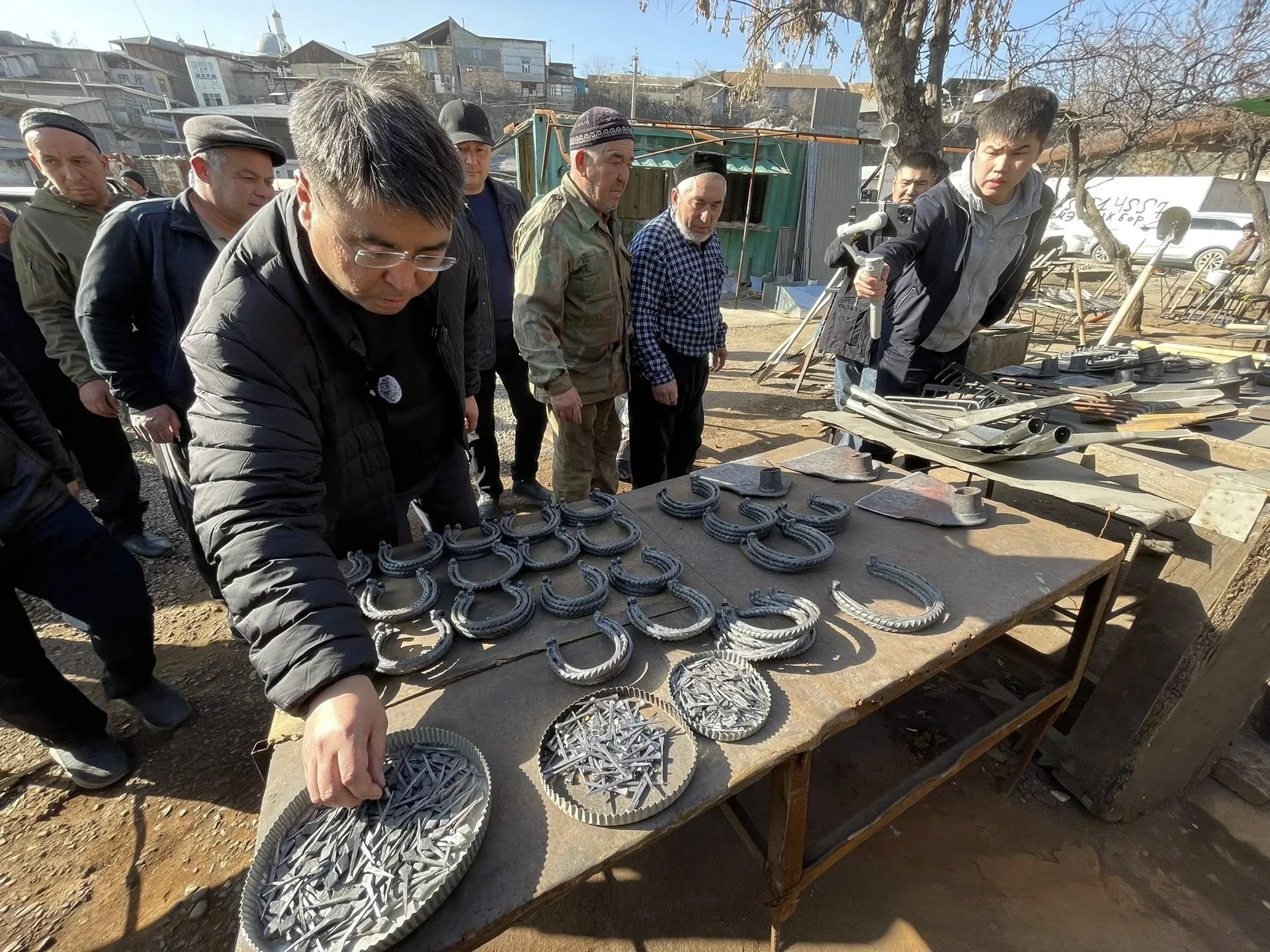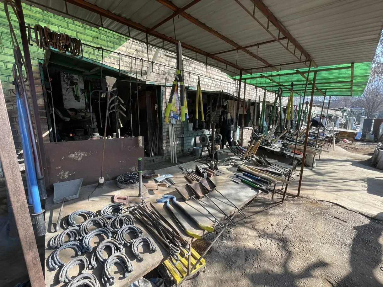 During his tour of the old market in Osh, Mayor Janar Akaev held a meeting with local blacksmiths.