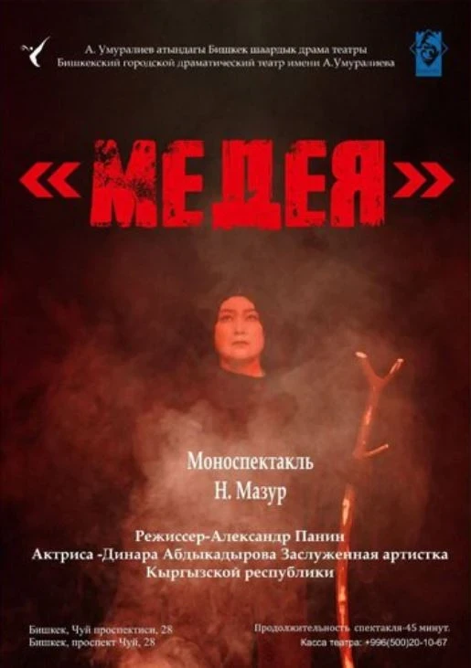 The talented Dinara Abdykadyrova, honored artist of the Kyrgyz Republic, conveys the ancient tale of passion, pain, and vulnerability in this performance, where Medea is a woman who gave herself entirely to love and ultimately lost everything.