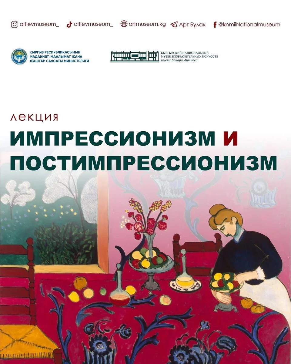 In the lecture, we will discuss Impressionism and Post-Impressionism under the guidance of art historian Akjibek Beishenbaev.