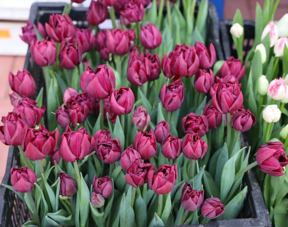 Visitors can purchase flowers both wholesale and retail. Prices for tulips start from 75 soms.