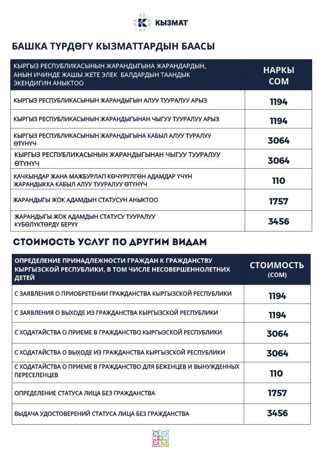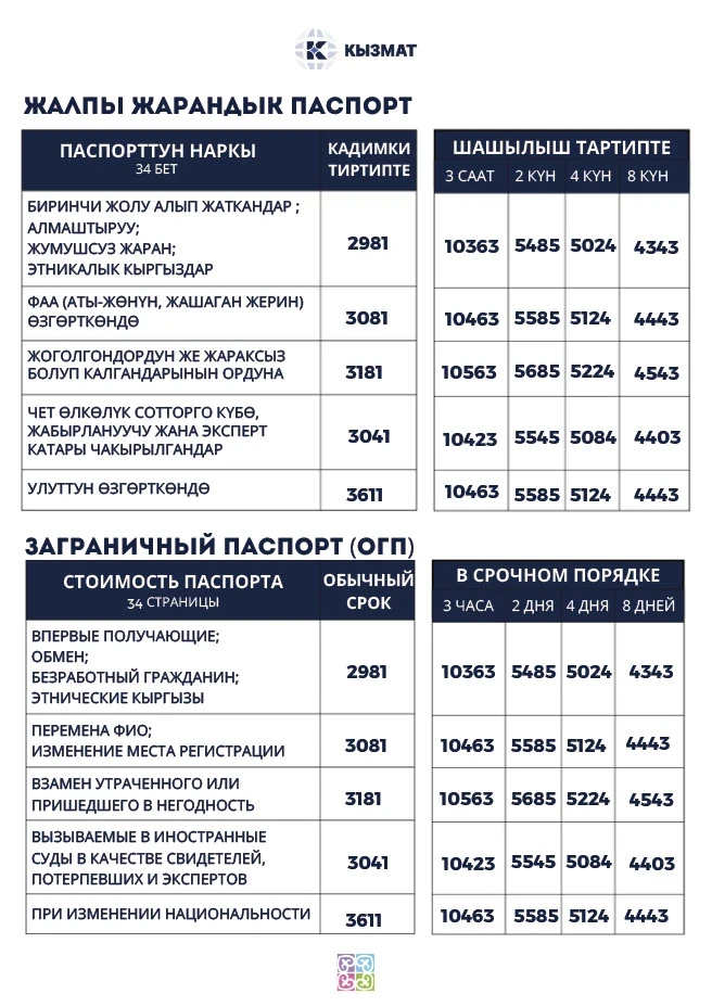 In Kyrgyzstan, there is an increase in tariffs for government services, including the issuance of passports and various certificates. This information was provided by the State Institution "Kyzmat".