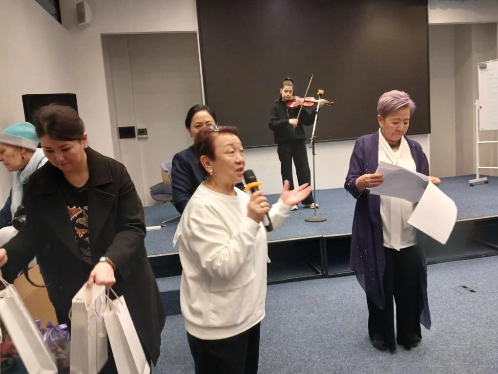 Participants are offered free classes in Kyrgyz and English, digital literacy courses that teach the use of phones, the internet, and applications. Creative activities are also held — singing, dancing, drawing, knitting, and handicrafts. To maintain health, classes in gymnastics, yoga, and Nordic walking are organized.