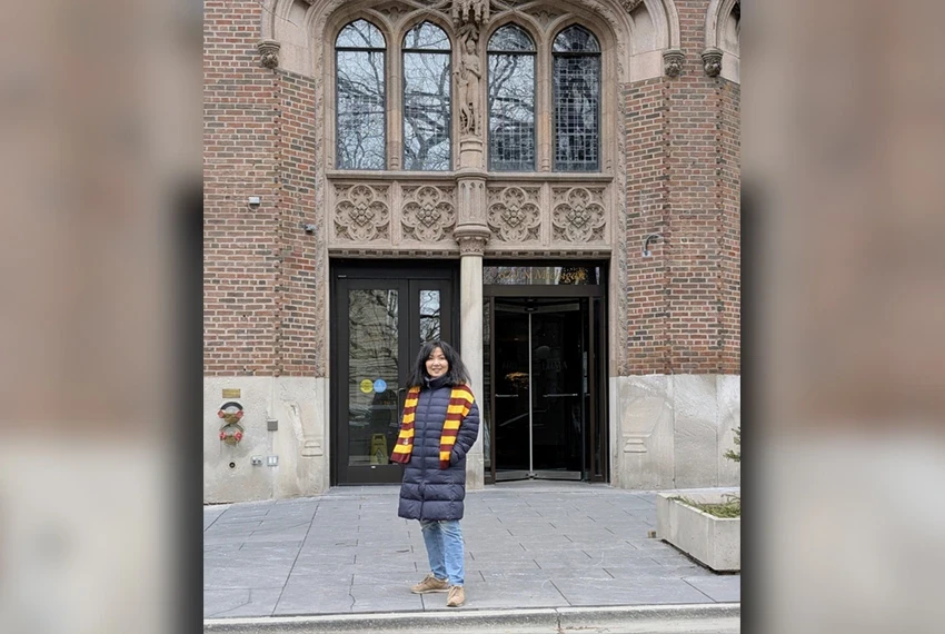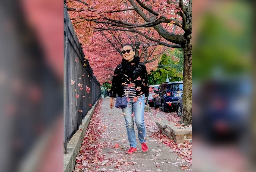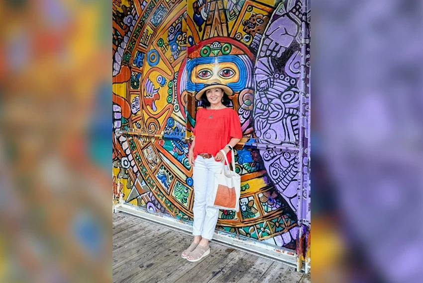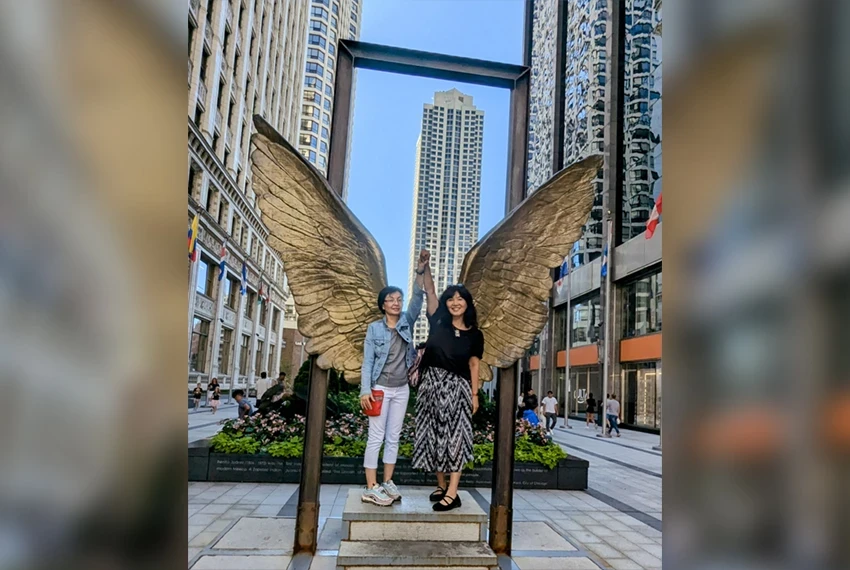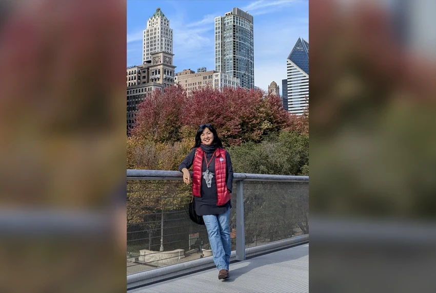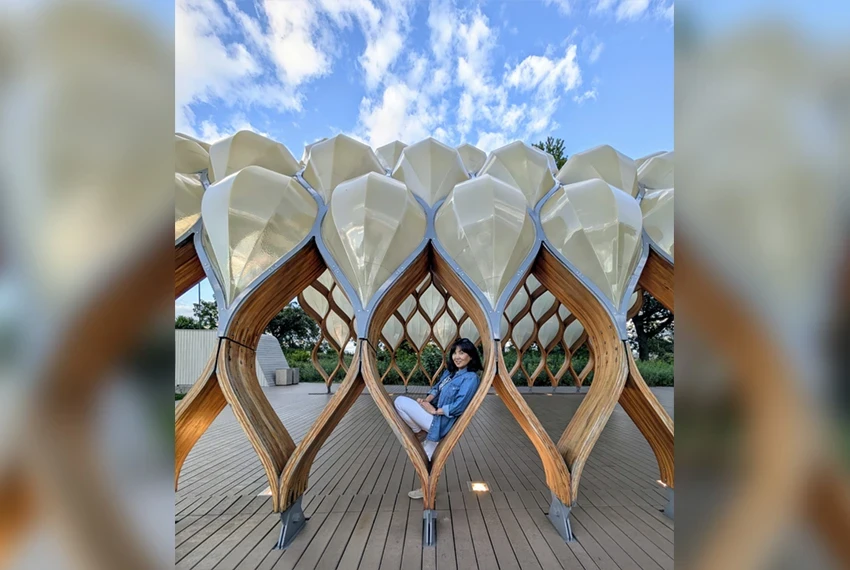 Photo from the interviewee's archive. Nazgul Mokeeva at the installation "Cloud Gates"