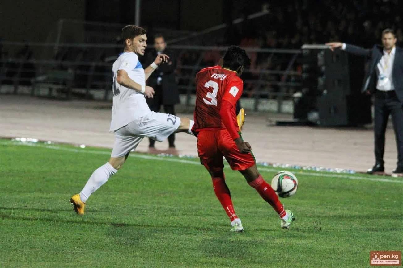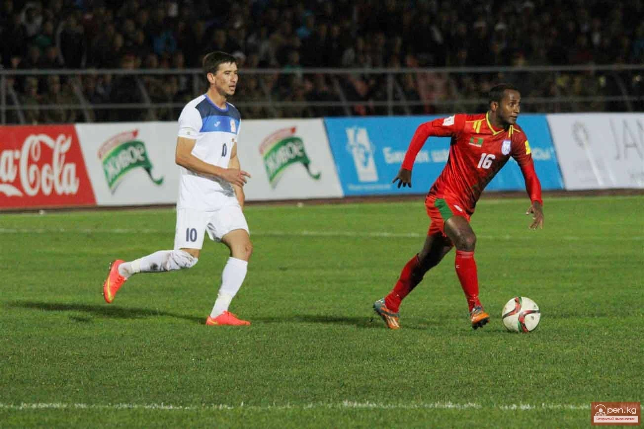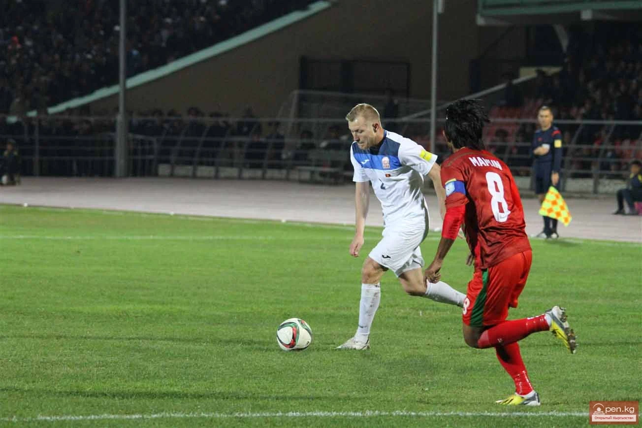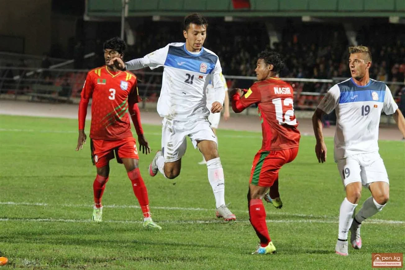 The Kyrgyzstan national team played its fifth match in the World Cup 2018 qualifying campaign on October 13 in Bishkek against the Bangladesh national team. Our team had already managed to defeat this opponent with a score of 3:1 in Dhaka, so the domestic team was set only for victory. Moreover, the opponent's coach noted that it is very unusual for his players to play in cool weather. The following players took the field for Kyrgyzstan: Pavel Matyash, Valery Kichin, Viktor Mayer, Azamat Baymatov, Mirlan Murzaev, Tamirlan Kozubaev, Pavel Sidorenko, Vitaly Lyuks, Farhat Musabekov, Anton Zemlyanukhin, Edgar Bernhardt. Right from the starting whistle, our footballers rushed into the attack. They hardly moved away from the opponent's goal. In the 24th minute, the Kyrgyzstan team earned a free kick, but Valery Kichin shot poorly from a low position. The goal against the opponent was scored in the 27th minute. Vitaly Lyuks finished off a corner kick - 1:0! During the first half, there were many chances to increase the lead, but unfortunately, all were unsuccessful.