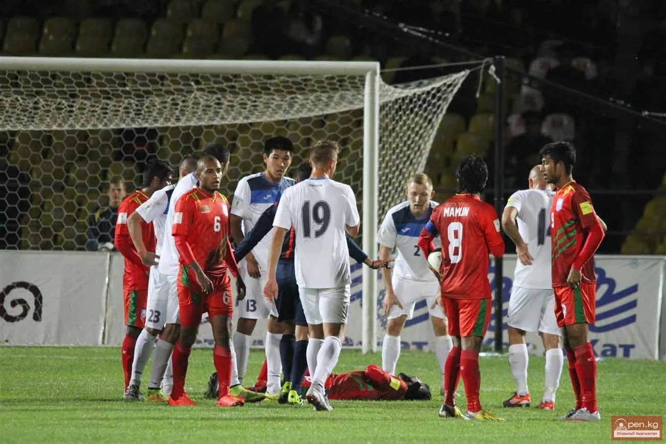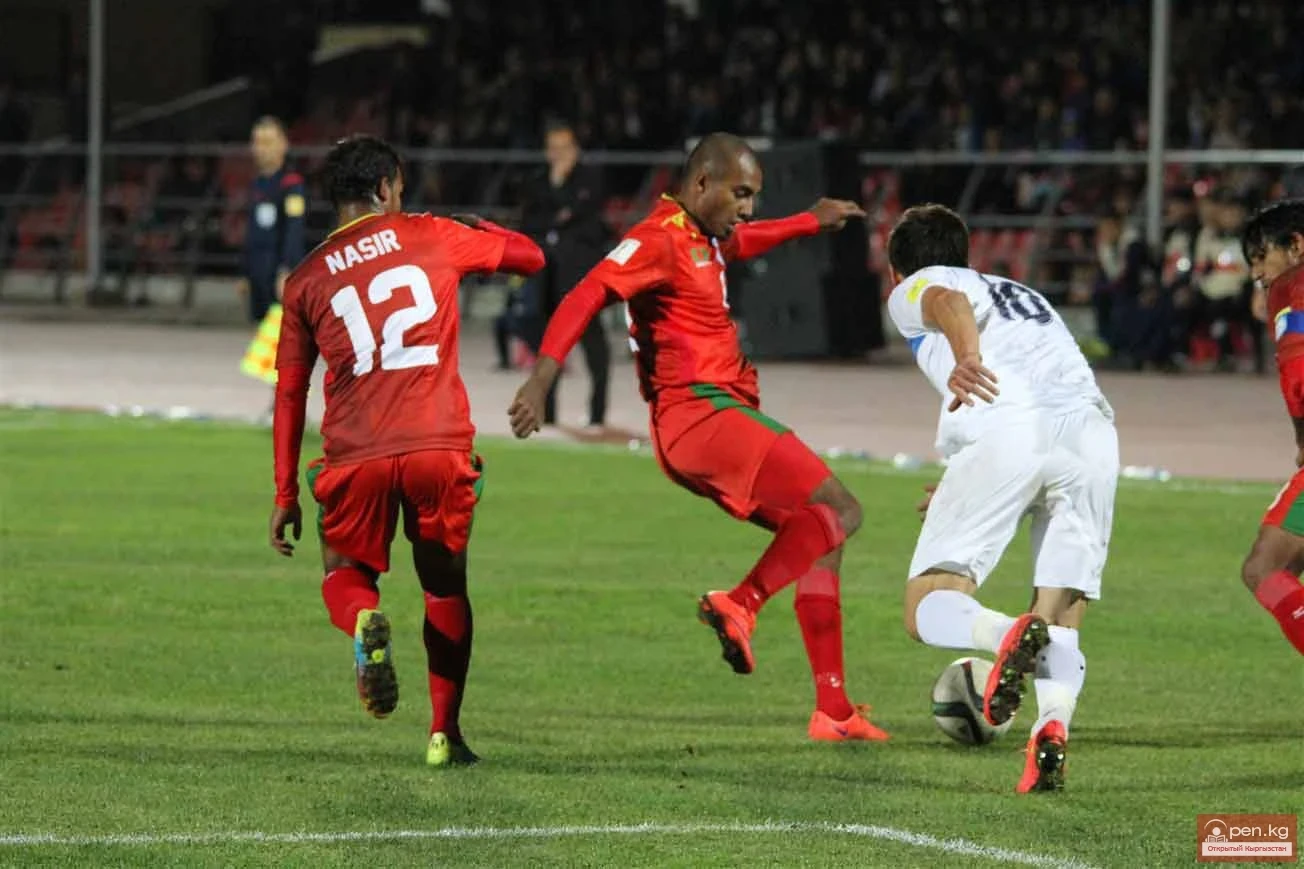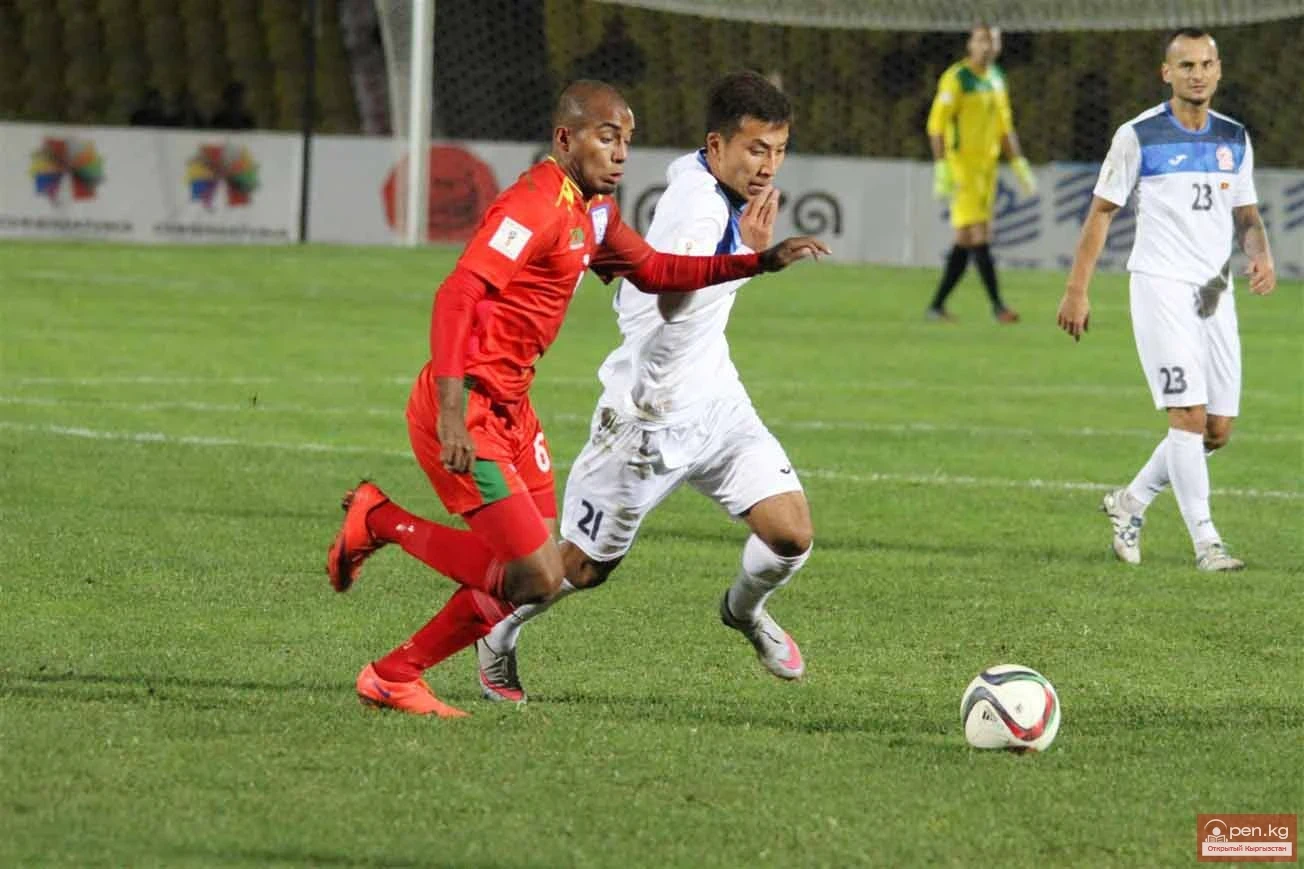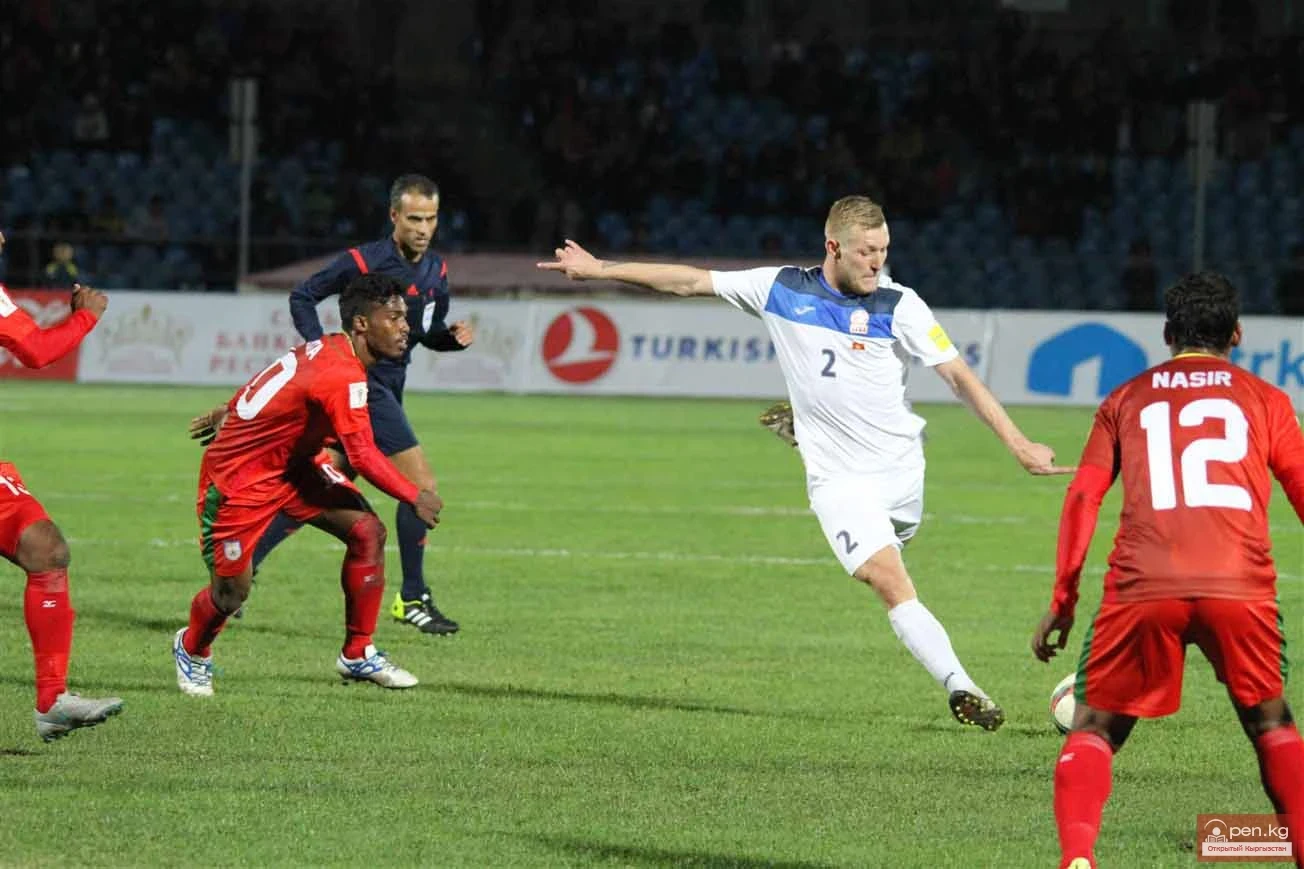 The Kyrgyzstan national team played its fifth match in the World Cup 2018 qualifying campaign on October 13 in Bishkek against the Bangladesh national team. Our team had already managed to defeat this opponent with a score of 3:1 in Dhaka, so the domestic team was set only for victory. Moreover, the opponent's coach noted that it is very unusual for his players to play in cool weather. The following players took the field for Kyrgyzstan: Pavel Matyash, Valery Kichin, Viktor Mayer, Azamat Baymatov, Mirlan Murzaev, Tamirlan Kozubaev, Pavel Sidorenko, Vitaly Lyuks, Farhat Musabekov, Anton Zemlyanukhin, Edgar Bernhardt. Right from the starting whistle, our footballers rushed into the attack. They hardly moved away from the opponent's goal. In the 24th minute, the Kyrgyzstan team earned a free kick, but Valery Kichin shot poorly from a low position. The goal against the opponent was scored in the 27th minute. Vitaly Lyuks finished off a corner kick - 1:0! During the first half, there were many chances to increase the lead, but unfortunately, all were unsuccessful.