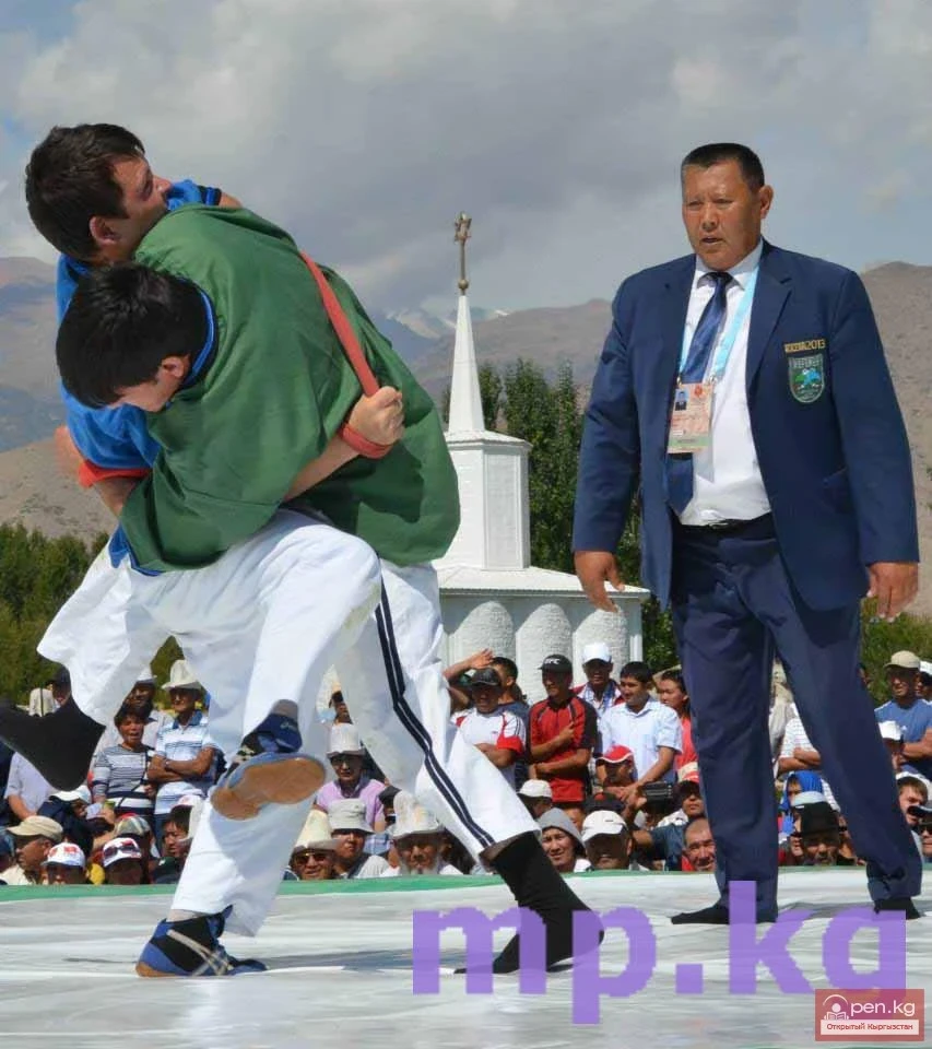 Kyrgyz kurash is also very interesting wrestling; the thing is that one type is more popular among the southern residents, while another is among the northerners. Gradually, the types are mixing, although the rules differ slightly, as does the clothing; for example, we wrestle in kimonos, while in another type, the torso is bare. In one type, it is allowed to release the hand from the belt for a few seconds; in our case, this is absolutely not allowed. Our wrestlers hold onto the belts, and as soon as they let go, they receive a warning. When the wrestling begins, if an athlete throws their opponent onto their stomach, it is rated as one point; if onto their side, two points; and if onto their shoulder blades, a clean victory is awarded. The match lasts for 4 minutes. This wrestling is recognized as the fastest in the world. We do not have ground fighting; as soon as a throw is completed, the wrestling stops.