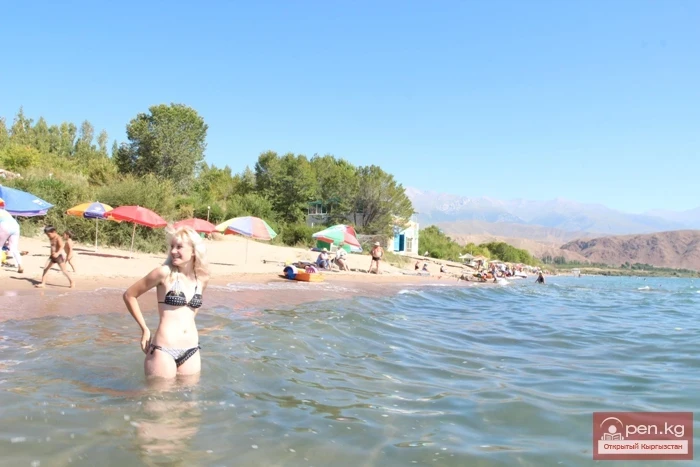 The beach is sandy. The distance to the beach of Lake Issyk-Kul is 50 meters.