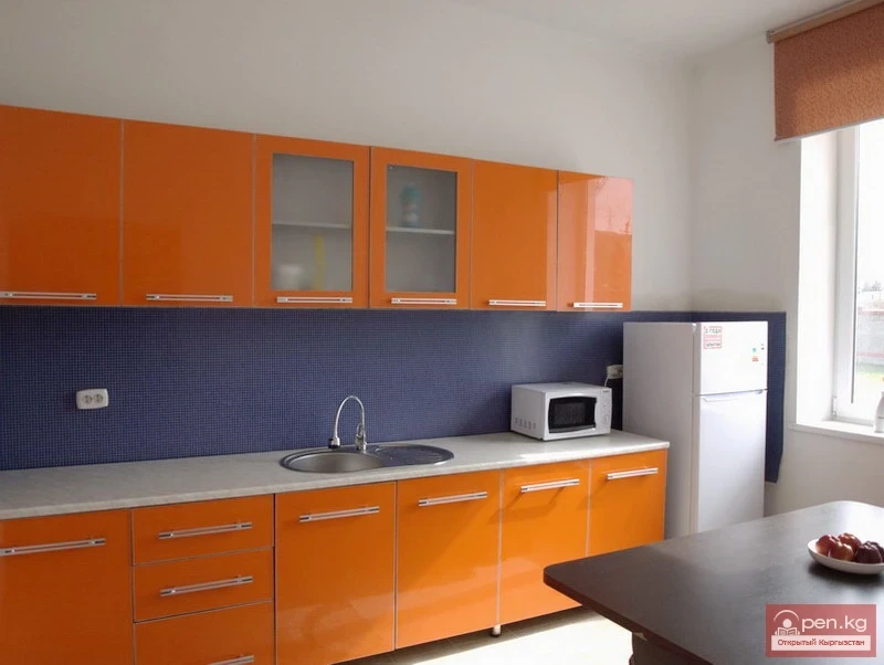 Total area is 60 m². Hallway, living room combined with kitchen (without stove), bedroom, bathroom with shower, toilet. Furniture, TV with satellite television, refrigerator, telephone, iron, ironing board, dishes.