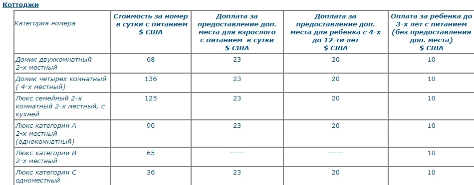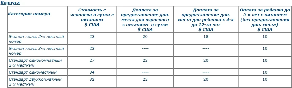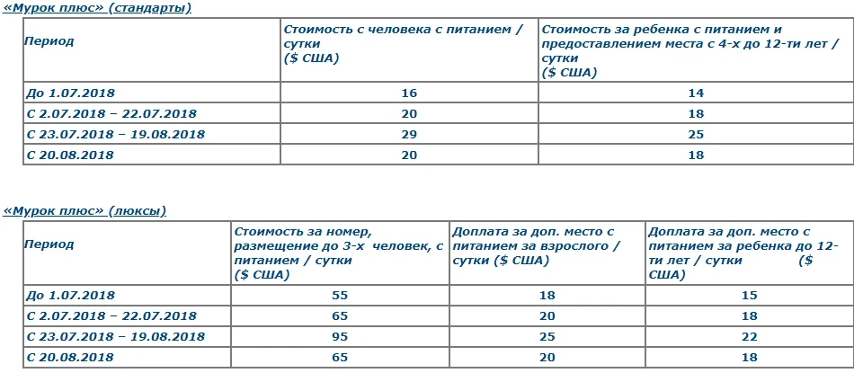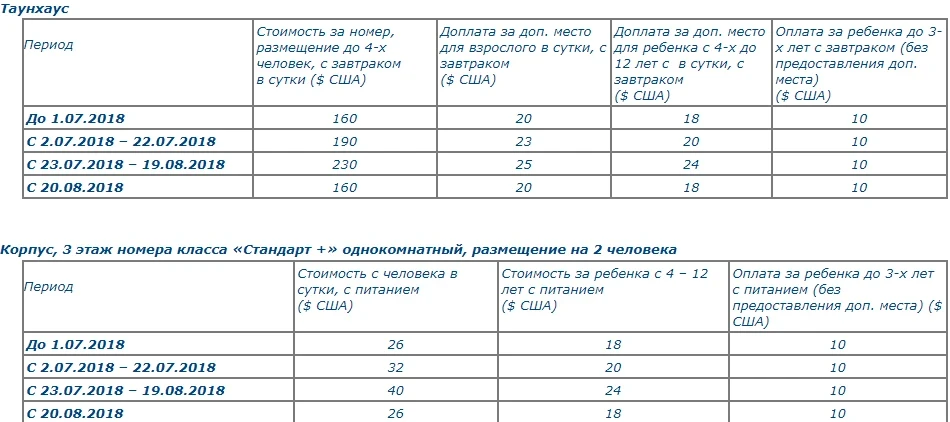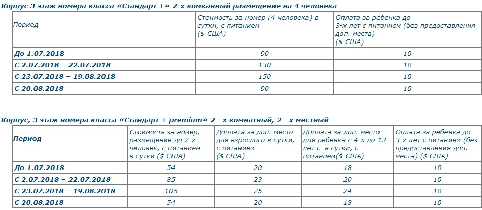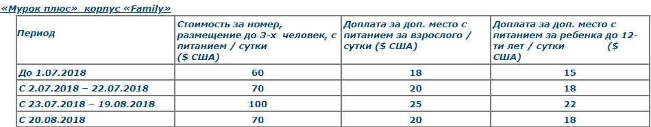– for children from 4 to 12 years old, an additional fee is charged with the provision of a bed and meals.