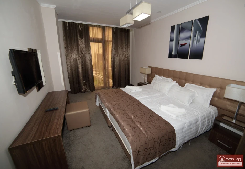 The boarding house is located in one of the most beautiful places in Kyrgyzstan, where natural and climatic conditions, crystal clear air, magnificent panorama of the surrounding landscape, and stunning beach combine. Here you can enjoy the wonderful resort climate and magnificent views of the snow-capped peaks of the Tien Shan mountains.