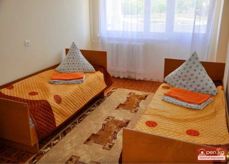 It is situated on the northern shore of the stunningly beautiful Issyk-Kul Lake, in the village of Bosteri. It is 270 km from the city of Bishkek. The amazing lake, gentle sun, and air that is both sea-like and mountainous create ideal conditions for organizing therapeutic recreation here. The effective treatment is also supported by the active development of the health and wellness service sector in this truly wonderful village.