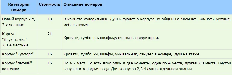 There are both buildings and cottages available. The buildings offer double and triple rooms. As for the cottages, you can choose one designed for two people, as well as three-person or four-person cottages.