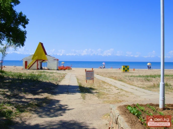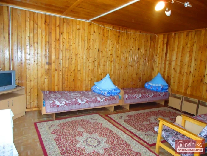 At a distance of 100-300 m from the cottages of the "Ala-Too" boarding house, there is a private well-maintained sandy beach, where large umbrellas can be rented or water sports can be enjoyed, such as boating or jet skiing.